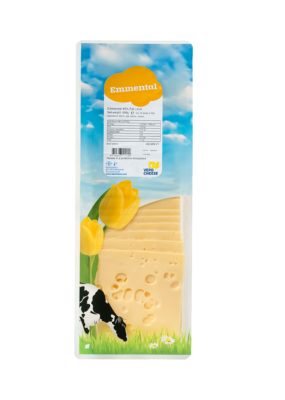 Dieser bekannteste Großlochkäse mit seinem erkennbaren süßen und nussigem Geschmack wird in mehreren Ländern hergestellt. Wir bieten verschiedene Variante an: einen deutschen Allgäuer-, ein französisches- und einen niederländischen Emmentaler.